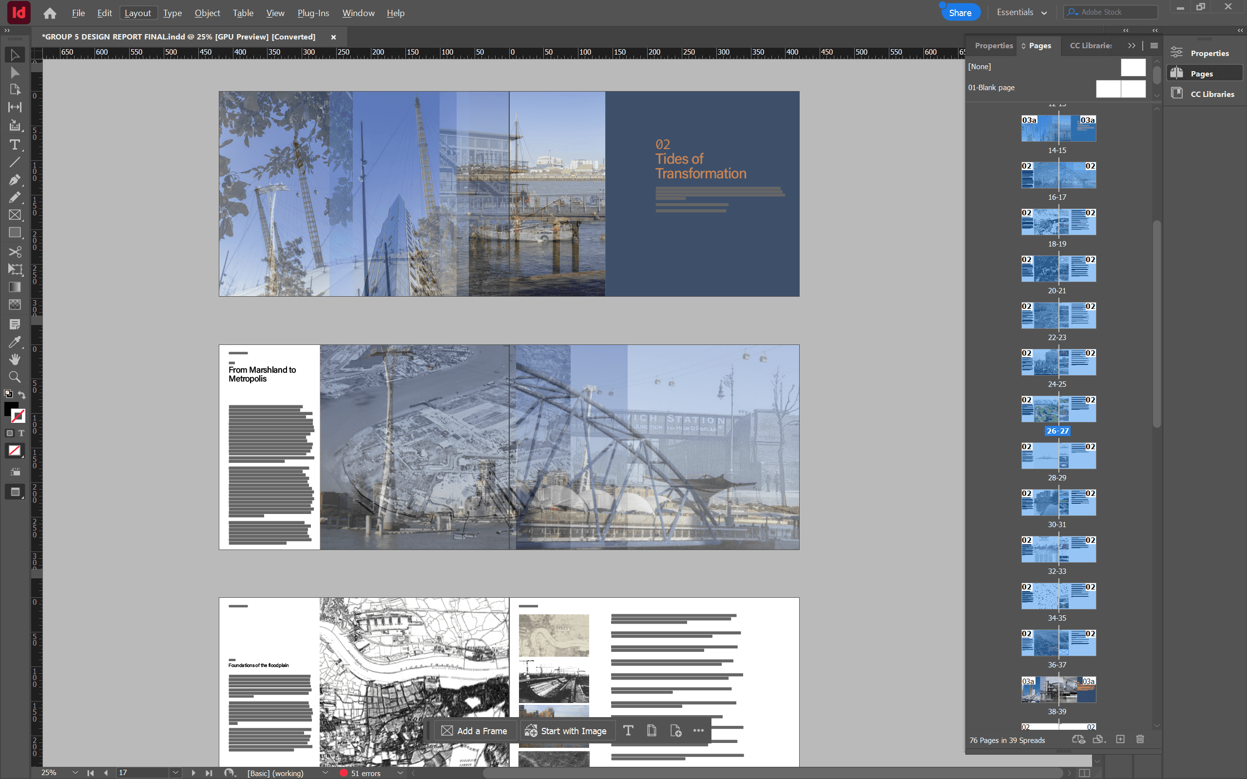 We finalised both our individual and group A1 maps, ensuring that each layer of information was clearly represented and consistent. Meanwhile, I continued my role of InDesign manager, compiling our collective research into the templated report.
