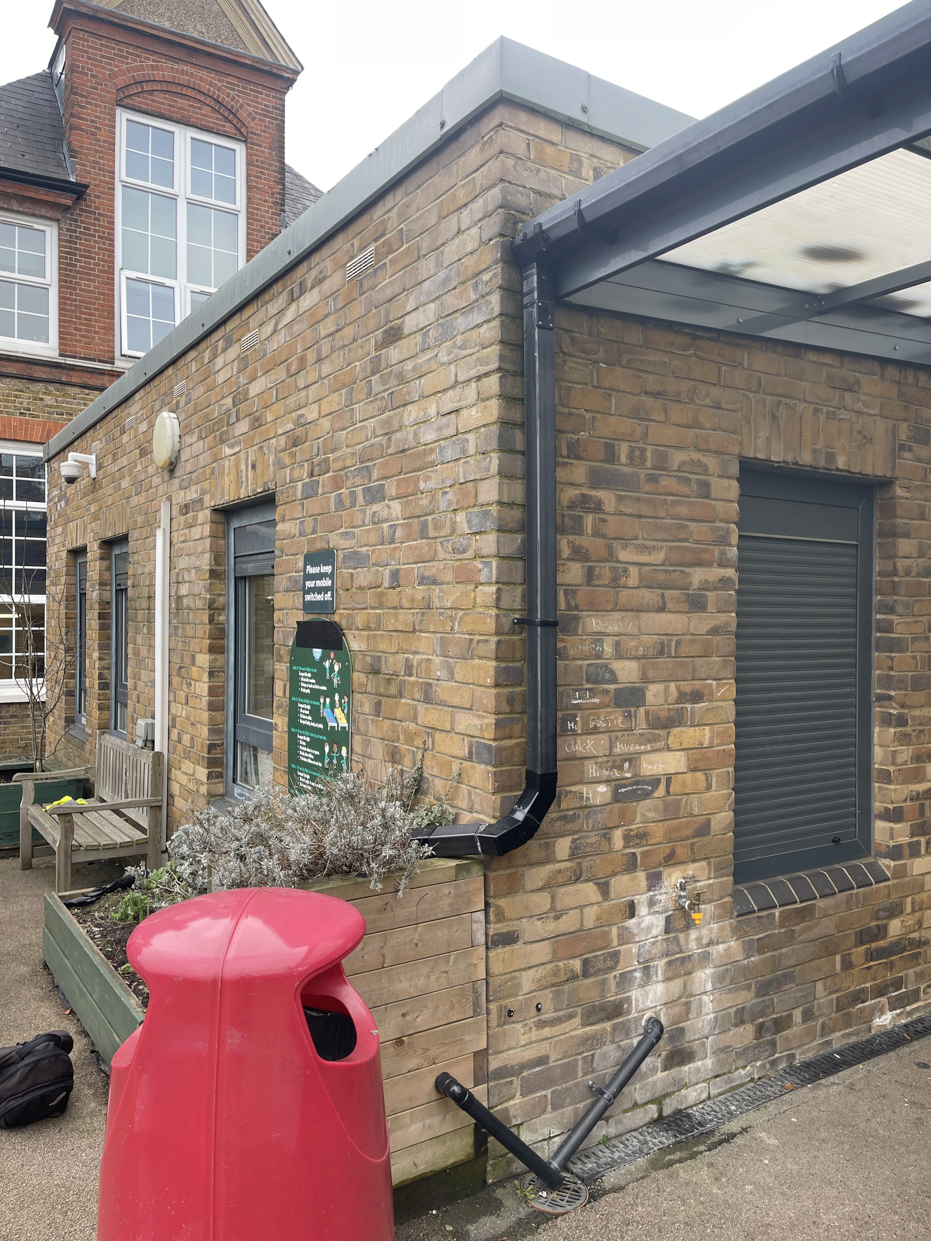 In response to persistent surface flooding, the school’s staff have taken matters into their own hands. Without access to formal water management infrastructure, they have rerouted downpipes across the site, creating impromptu rain gardens wherever water could be redirected and absorbed. These handmade interventions, constructed with limited resources and evolving through trial and error, reflect an urgent need to cope with an overburdened landscape.
