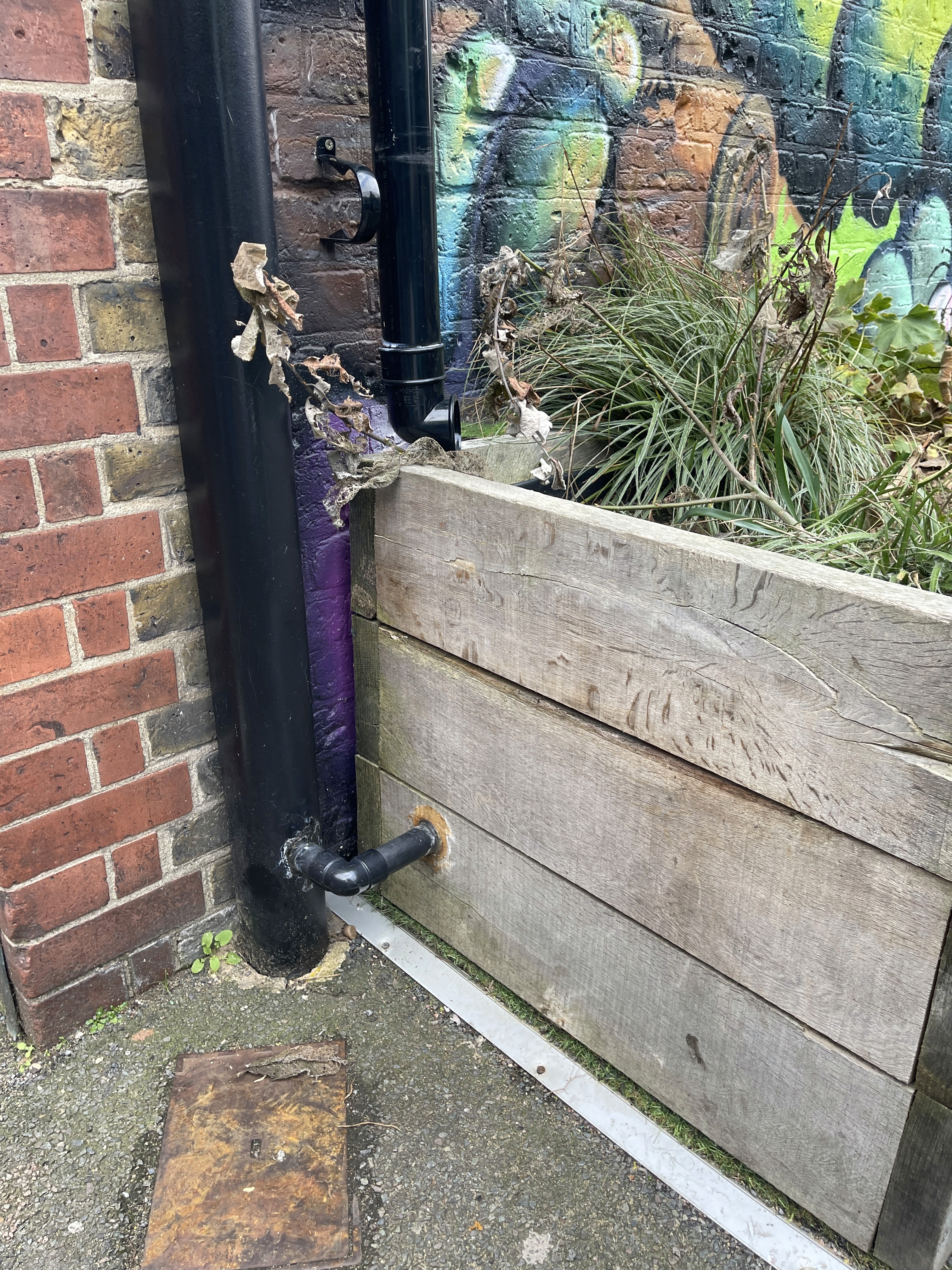 While resourceful, this reconfiguration is ultimately fragmented. The water lacks a coherent journey through the site. Some areas are oversaturated, others dry and neglected. These improvised systems are highly visible - exposed pipes, ad-hoc rain gardens, redirected flows - yet they remain largely ineffective, unaesthetic and disconnected from play, planting, or long-term ecological intent.